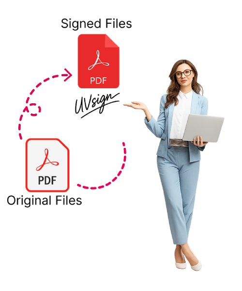 Your original PDF files always remain unchanged. The system generates a separately signed version to maintain document integrity and compliance.